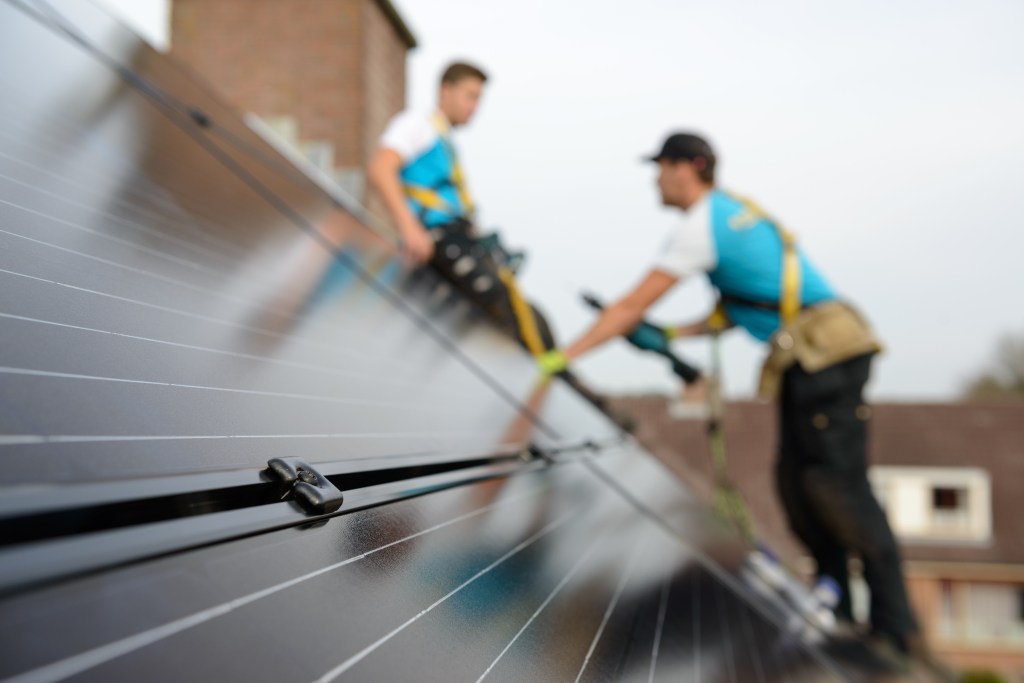 - Fixer les panneaux solaires sur les rails ClickFit EVO : utilisez les brides intermédiaires et terminales pour maintenir les panneaux en place.